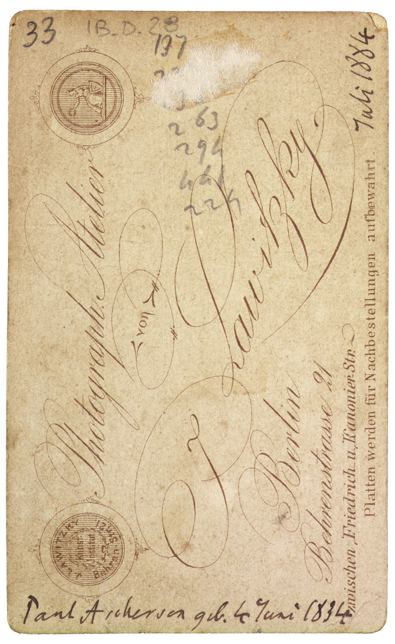 Nota manoscritta sul verso: Paul Ascherson geb. 4 Juni 1834.