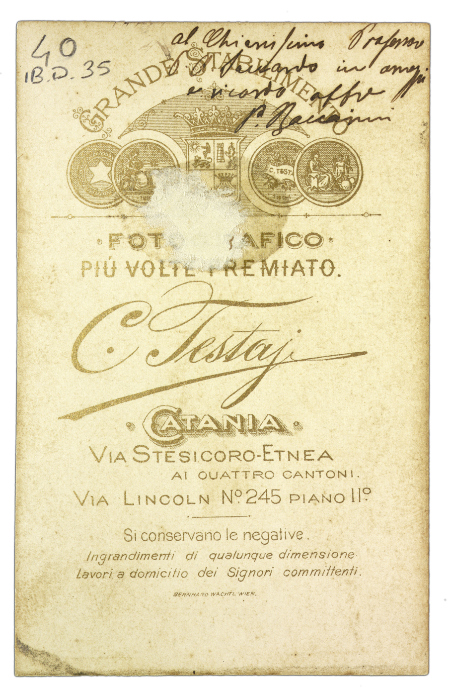 Nota manoscritta sul verso: al Chiarissimo Professor P. A. Saccardo in omaggio e ricordo offre P. Baccarini.
