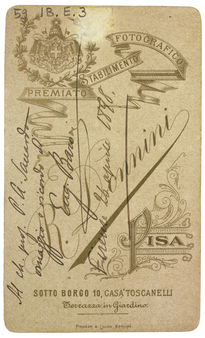 Presente nota manoscritta sul verso: Al ch. prof. P. A. Saccardo omaggio e ricordo di Eug. Baroni Firenze 26 aprile 1898.