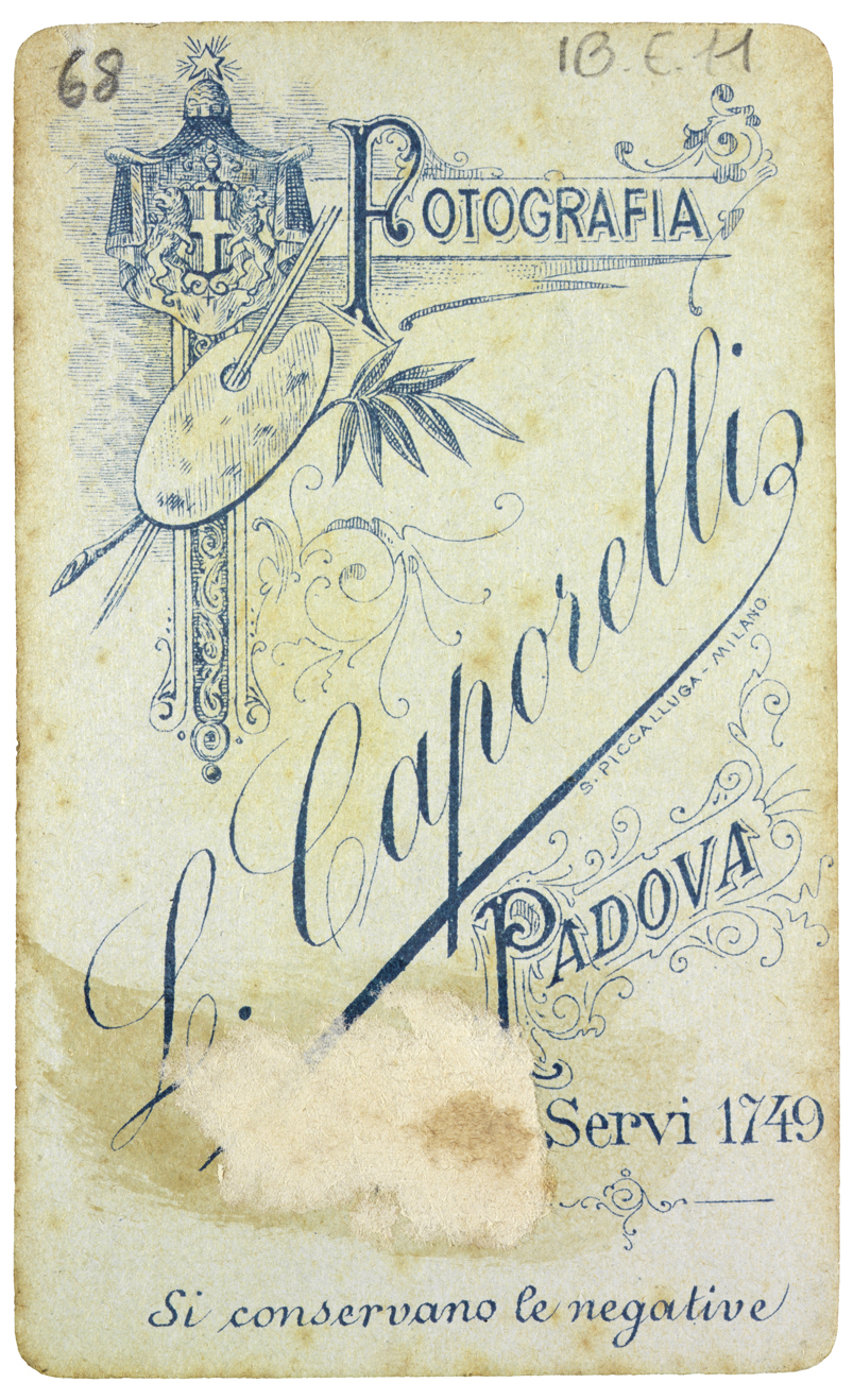 Titolo manoscritto sul recto, dove, oltre agli estremi cronologici, compaiono anche le note: Racc. Benv. [Raccolta Benvenisti]; Fot. Squinabol.