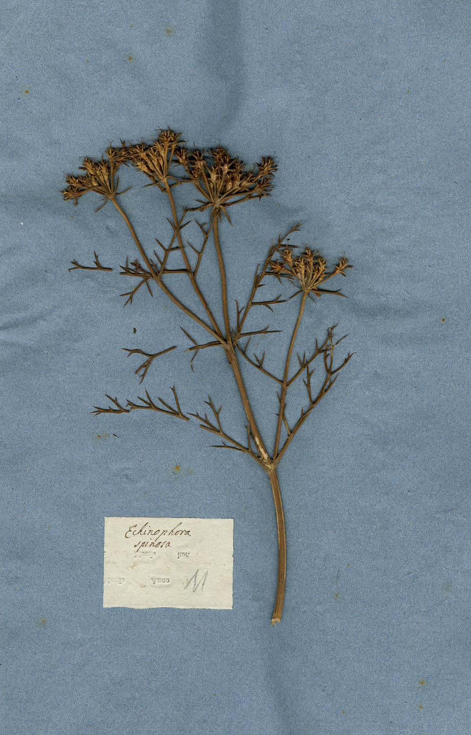 Foglio dell'erbario di Giovanni Marsili con cartellino manoscritto: Echinophora spinosa