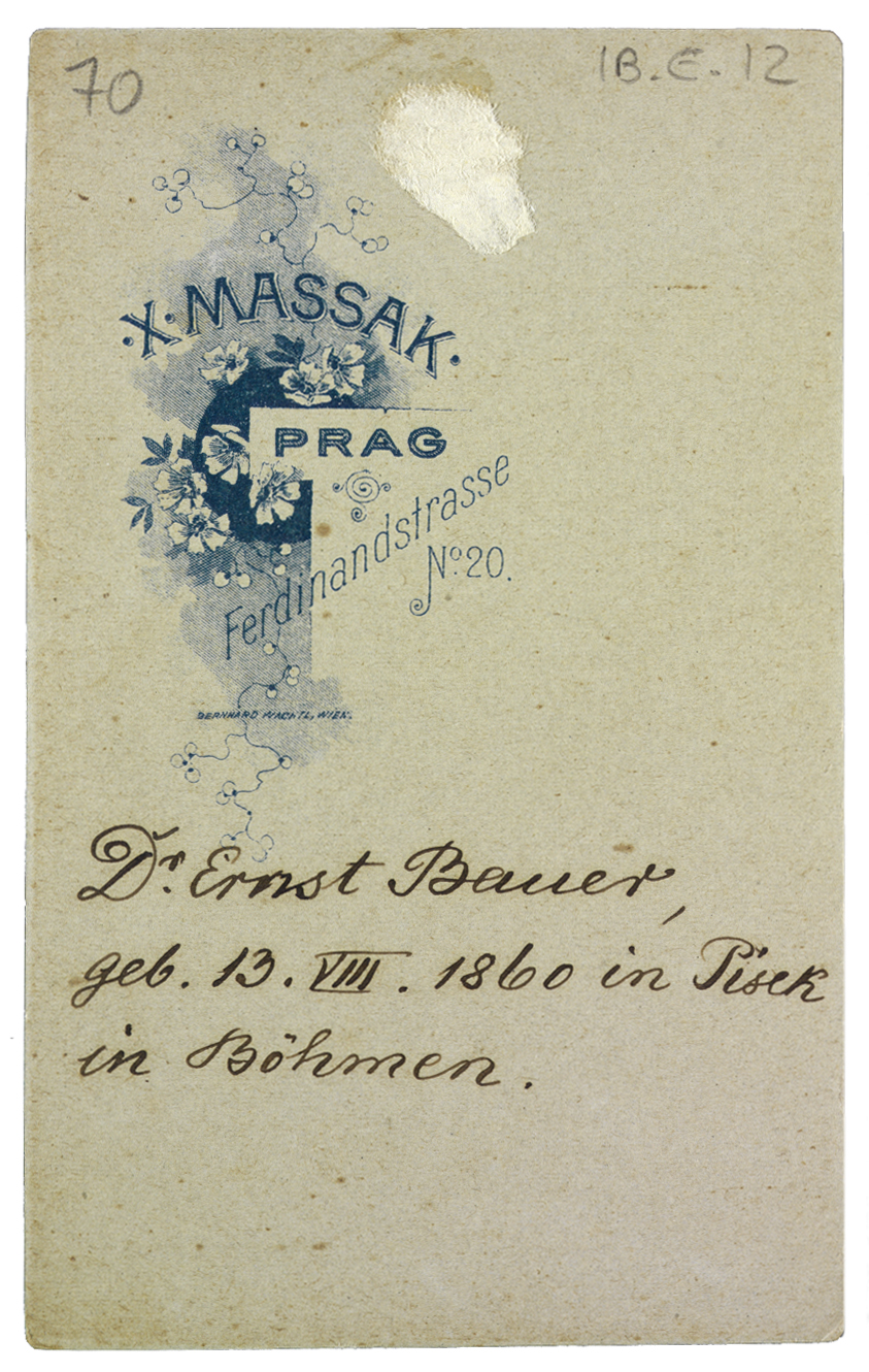 Nota manoscritta sul verso: D. Ernst Bauer, geb.13.VIII.1860 in Pisek in Bohemen.