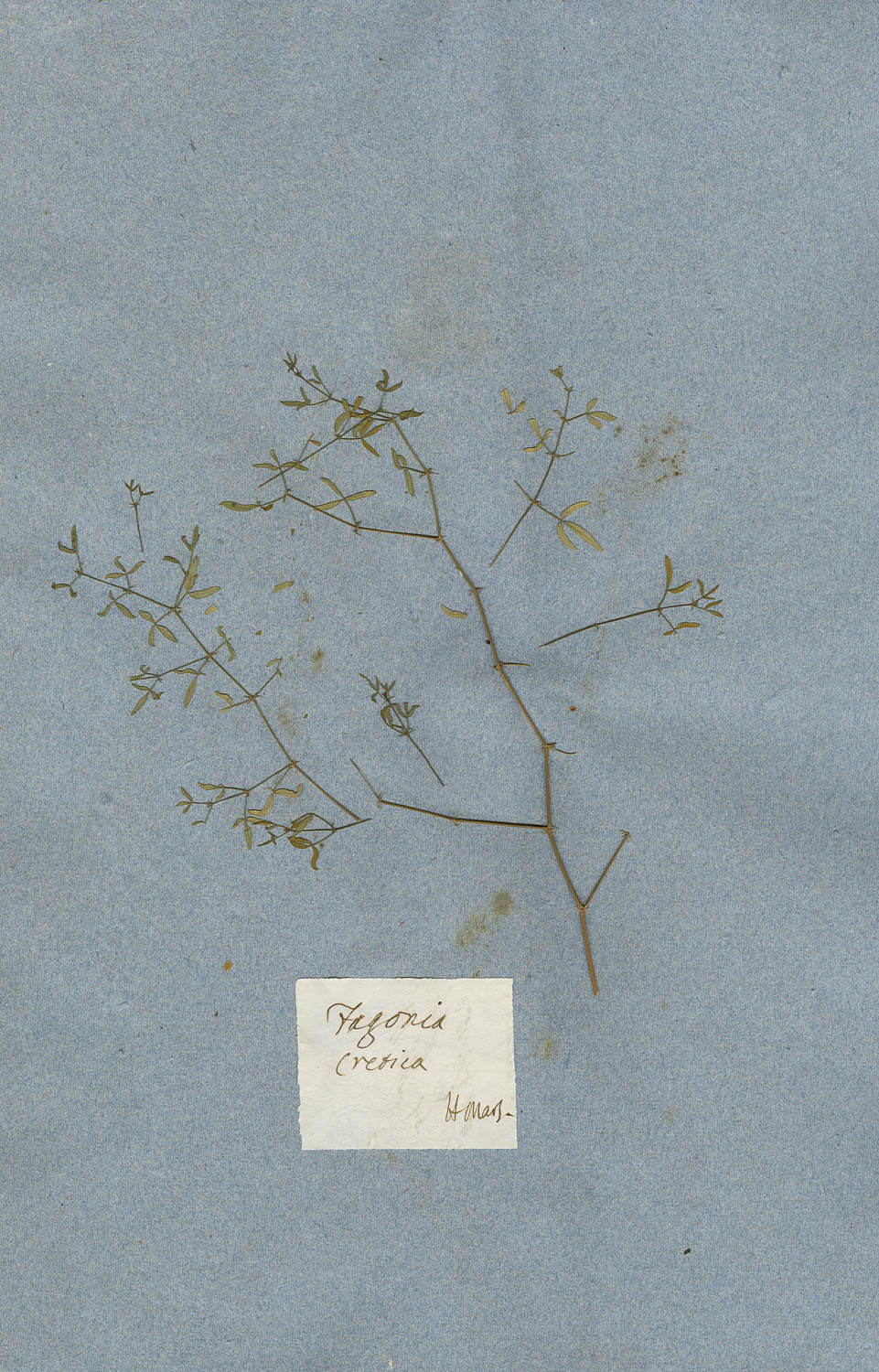 Foglio dell'erbario di Giovanni Marsili con cartellino manoscritto: Fagonia Cretica