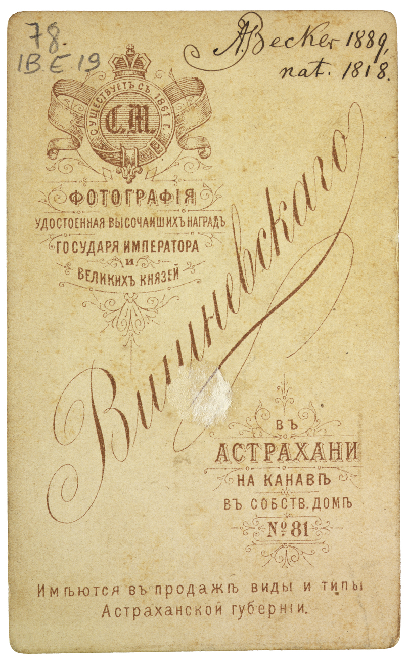 Presente nota manoscritta sul verso: A. Becker 1889, nat. 1818.