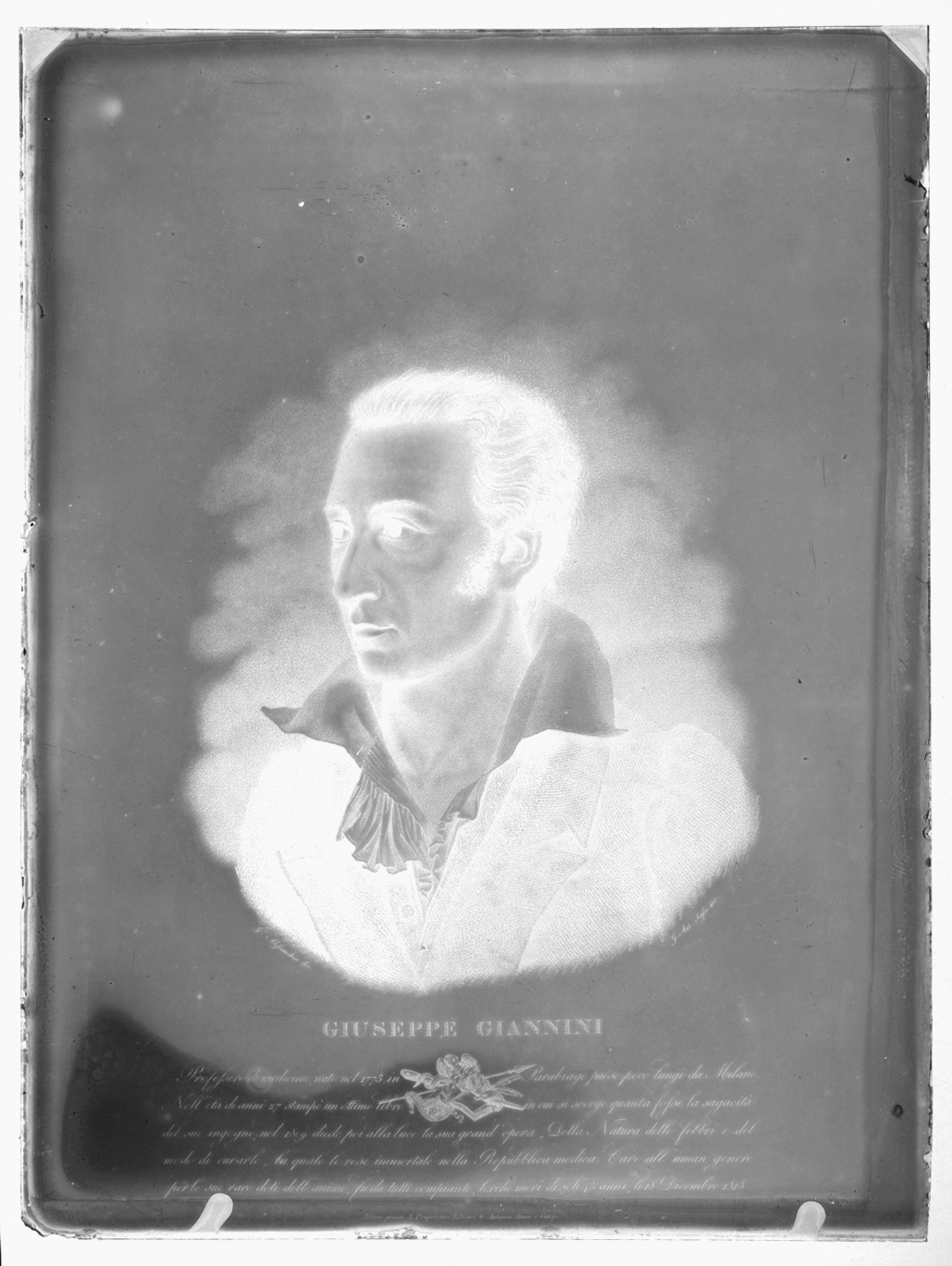 Sul recto del negativo su vetro è riportato il titolo e, al di sotto, una breve biografia del botanico.