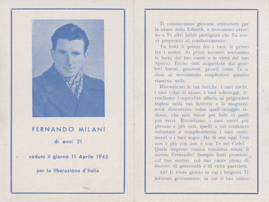 Fernando Milani di anni 21 caduto il giorno 11 aprile 1945.