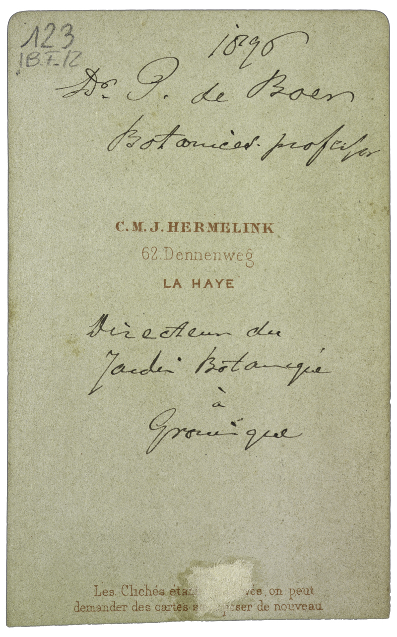 Nota manoscritto sul verso: 1896 D. P. de Boer Botanico professor Directeur du Jardin Botanique à Groninque