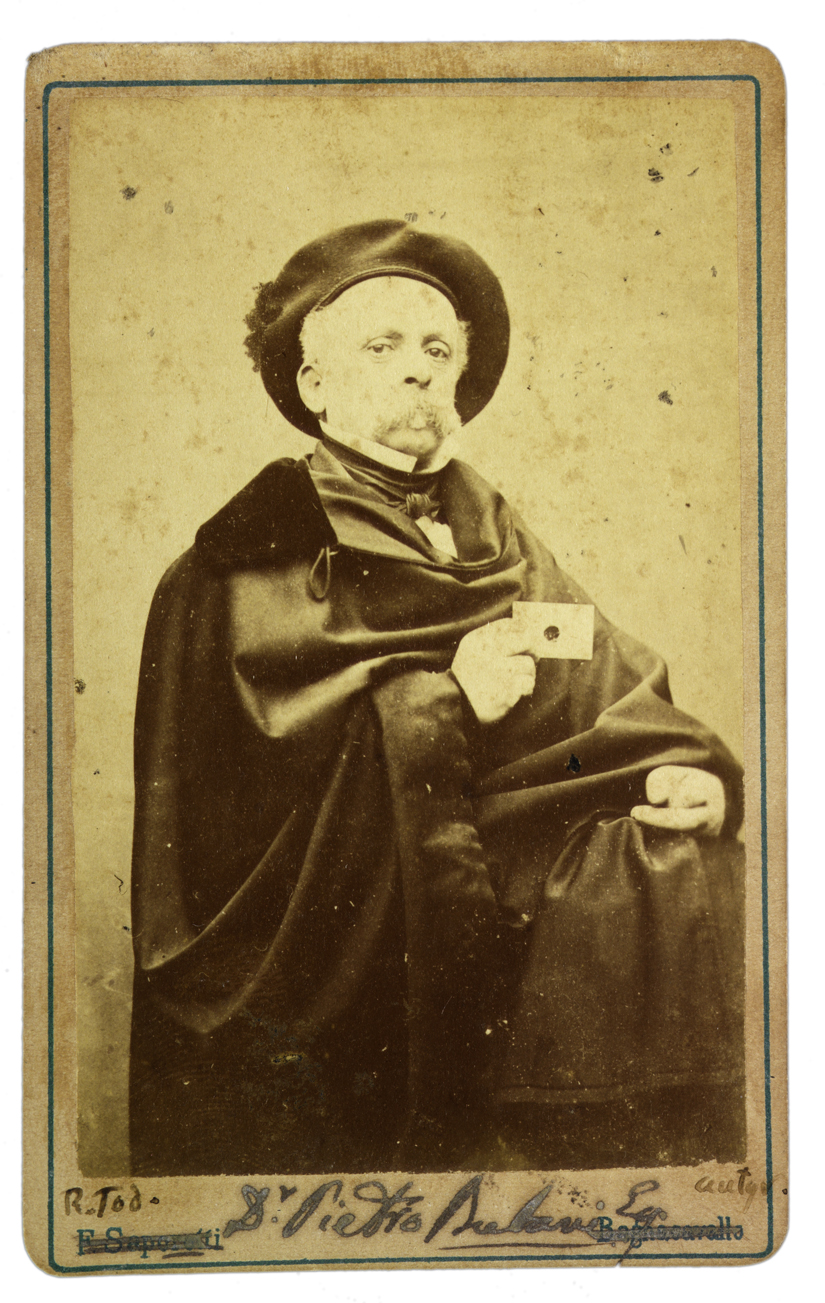 Titolo manoscritto sul recto, dove compaiono anche le note: autgr.; R. Tod. [Raccolta Todaro]. Montata su cartoncino 100 x 62 mm.