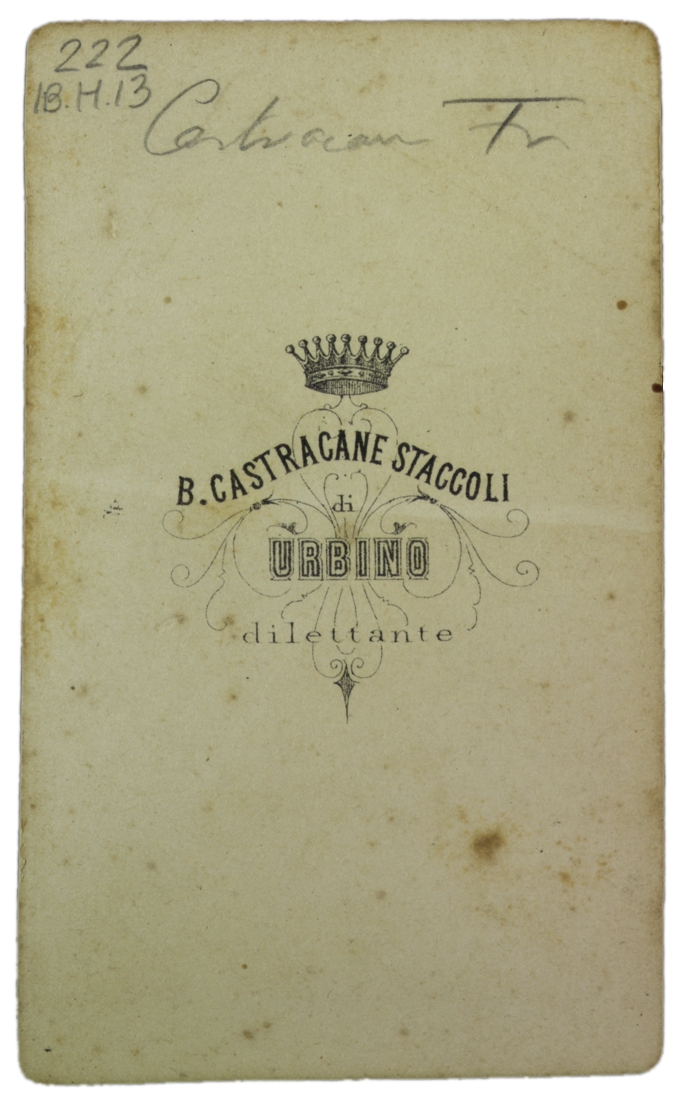 Nota manoscritta sul verso: Castracane Fr. Montata su cartoncino 103 x 62 mm.
