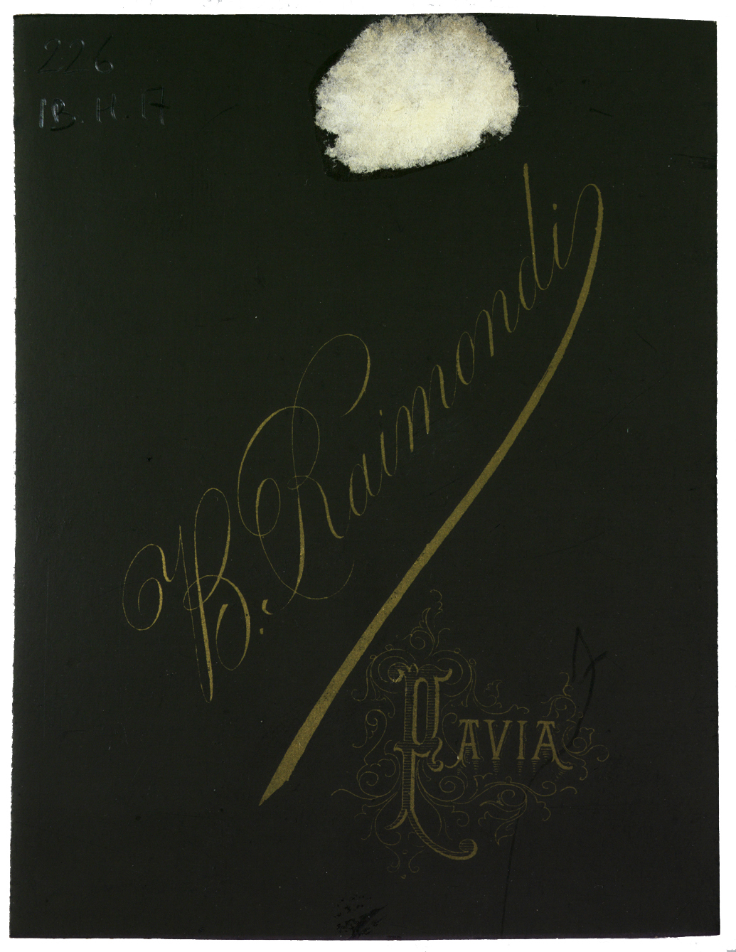 Nota manoscritta sul recto: All’illustre micologo Proff. P. A. Saccardo [...] 1890 F. Cavara. Montata su cartone 106 x 81 mm.