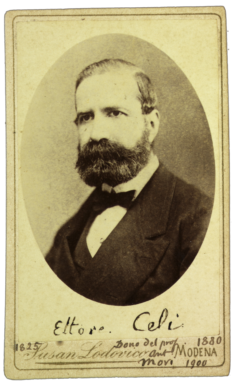 Titolo manoscritto ed estremi cronologici riportati sul recto, dove compare anche la nota: Dono del prof. Ant. Movi 1900. Montata su cartoncino 103 x 68 mm.