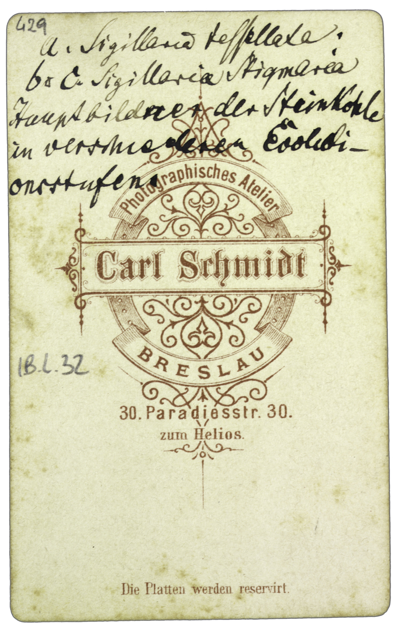 Titolo manoscritto sul recto, dove compaiono anche le note: a, b, c. Nota presente anche sul verso: a. Sigillaria tessellata; b. c. Sigillaria stigmaria [...].