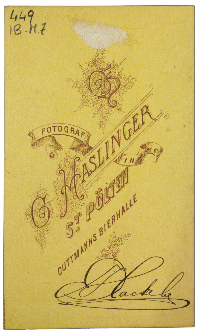 Titolo manoscritto sul recto, dove compaiono anche le nota: St. Pölten; R. Tod. [Raccolta Todaro]. Nota manoscritta sul verso: E. Hackel.