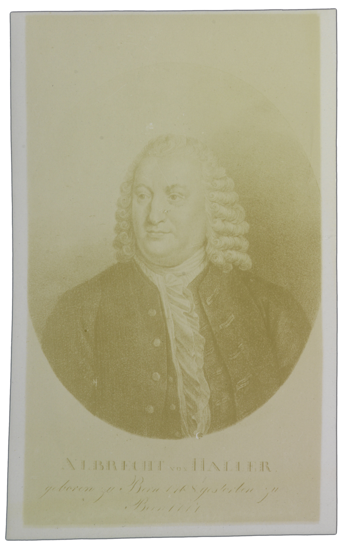 Titolo a stampa sul recto, accompagnato da questa notizia: geboren zu Bern 1708 gestorben zu Bern 1777.