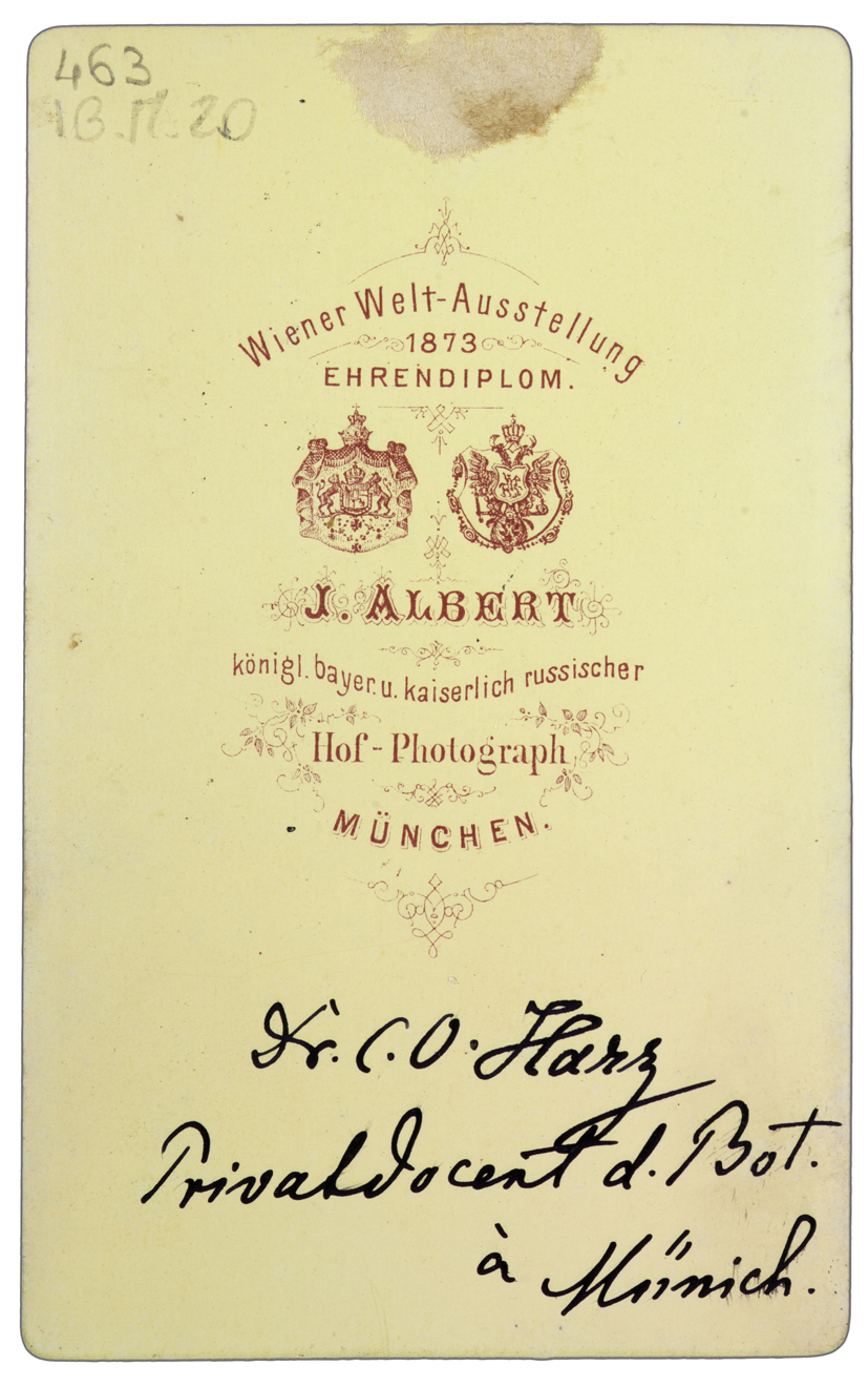 Titolo manoscritto sul recto, dove compare anche la nota: R. Tod. [Raccolta Todaro]. Nota manoscritta anche sul verso: Dr. C. O. Harz Privatdocent d. Bot. à Münich.