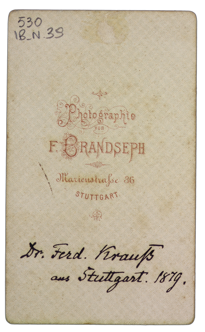 Nota manoscritta sul verso: Dr. Ferd. Krauss aus Stuttgart. 1879.
