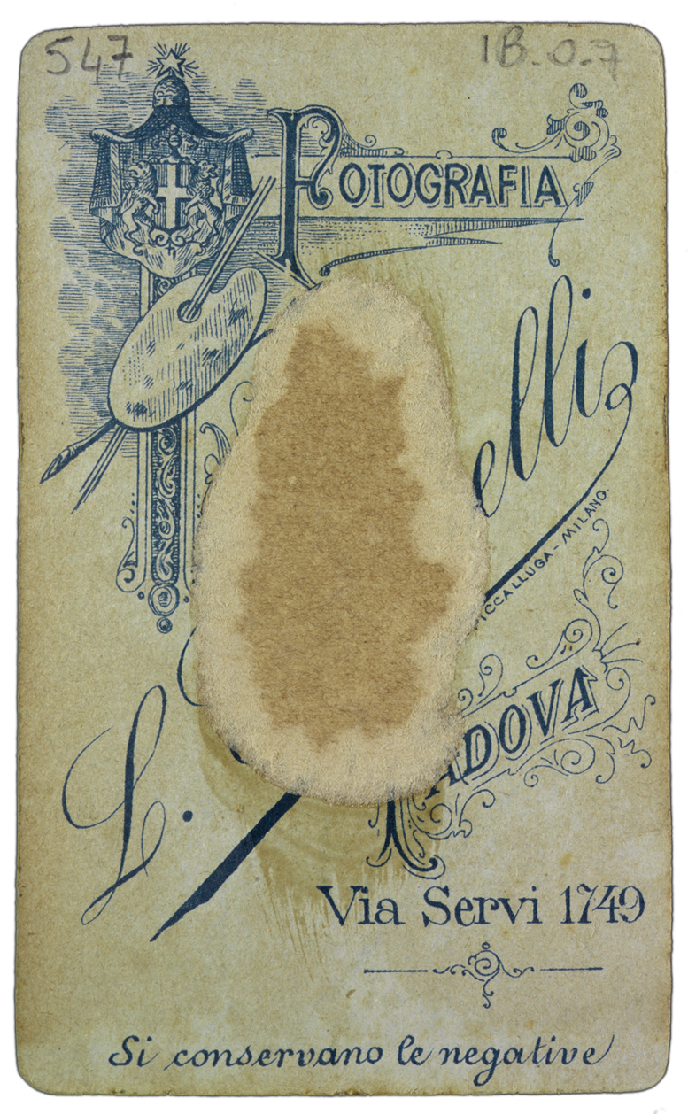 Titolo ed estremi cronologici manoscritti sul recto, dove compaiono anche le note: fot. Squinabol 1899; Racc. Benv. [Raccolta Benvenisti].