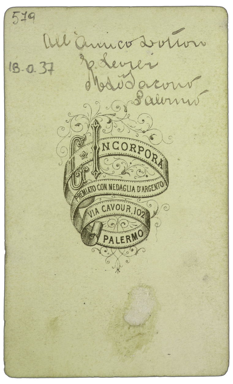 Nota manoscritta sul verso: all’amico Dottor E. Levier M Lojacono Palermo.