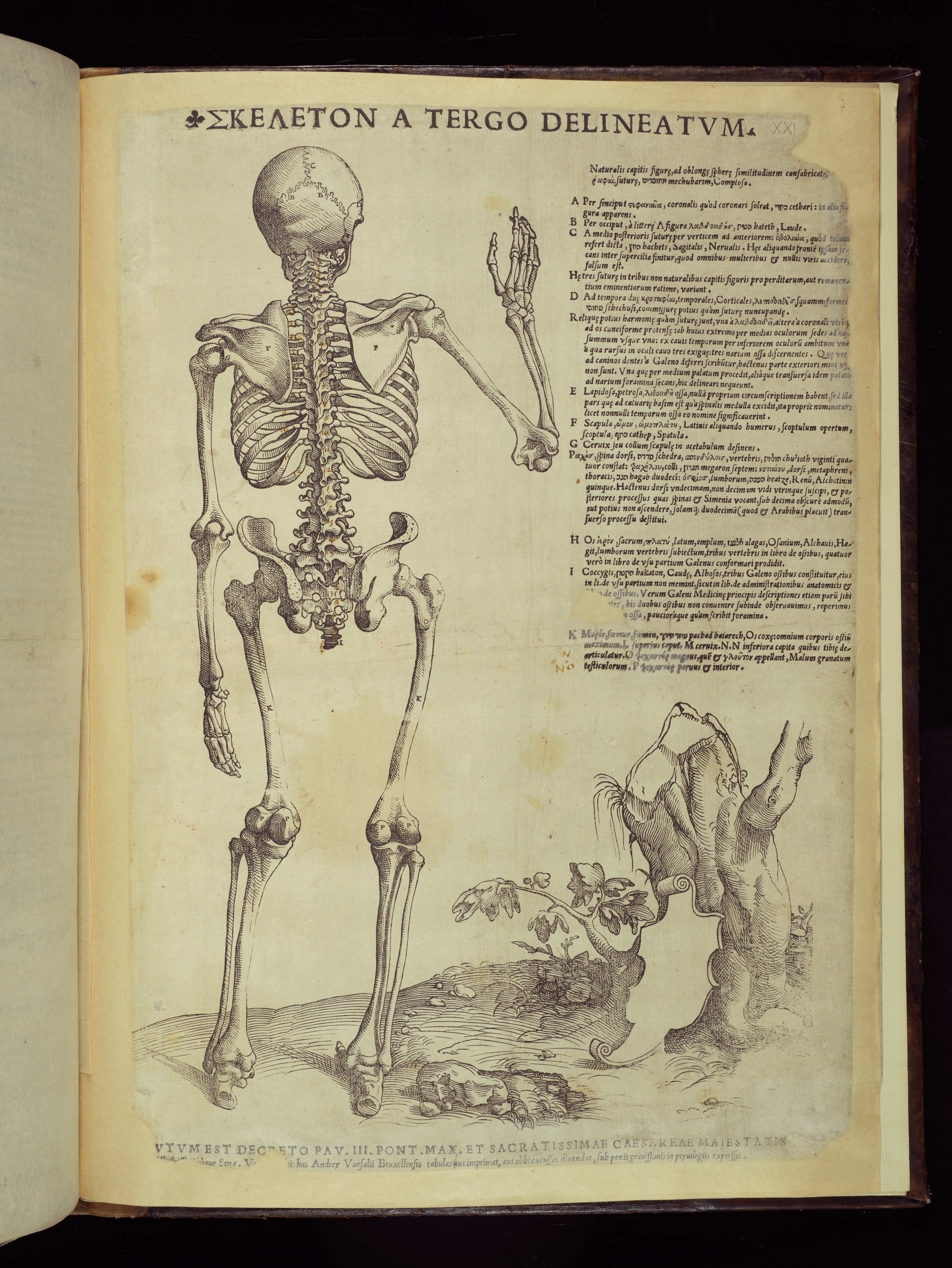 • Tabulae anatomicae sex 1538, scheletro visto di spalle, tavola 6 variante, Venezia Biblioteca Nazionale Marciana, Vesalius