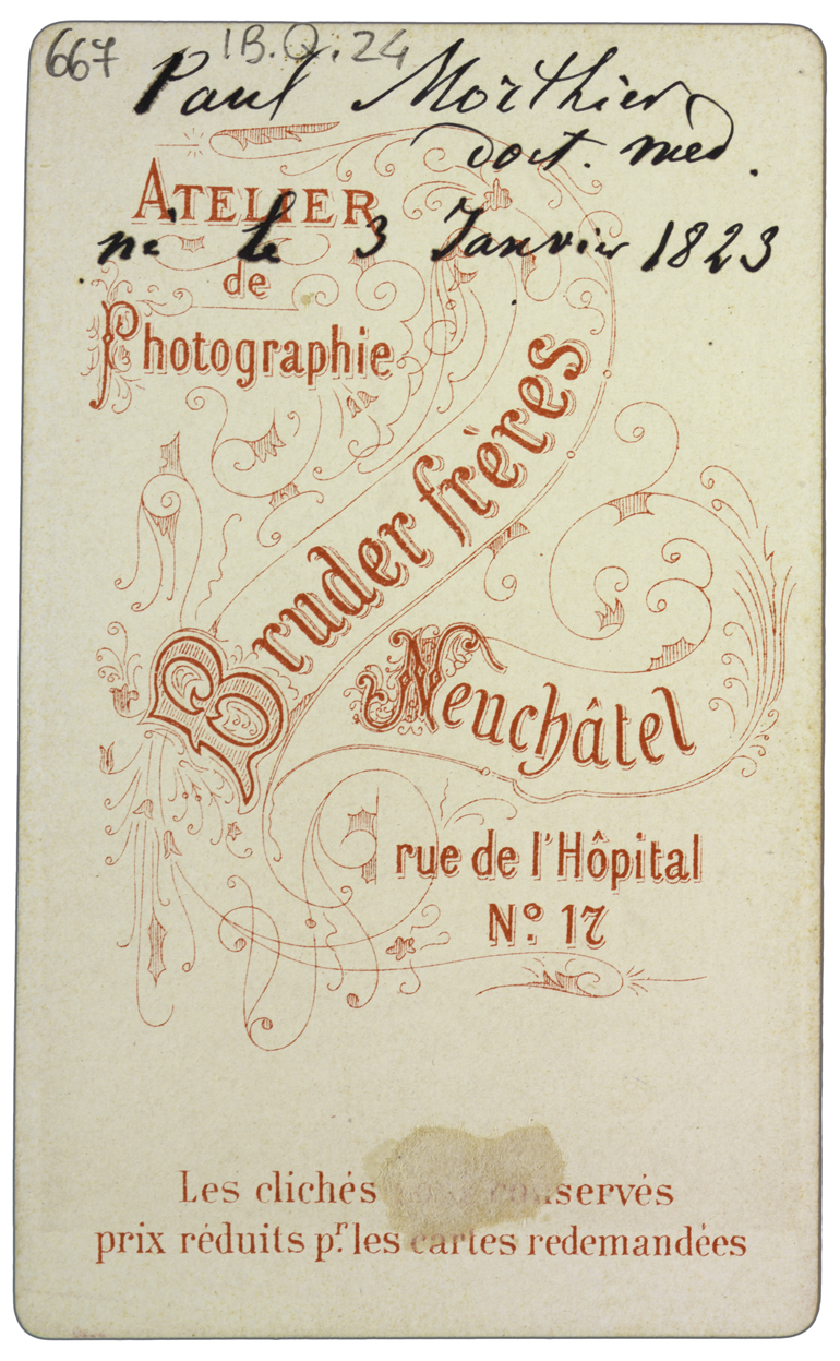 Nota manoscritta sul verso: Paul Morthier doct. med. nè le 3 Janvier 1823.