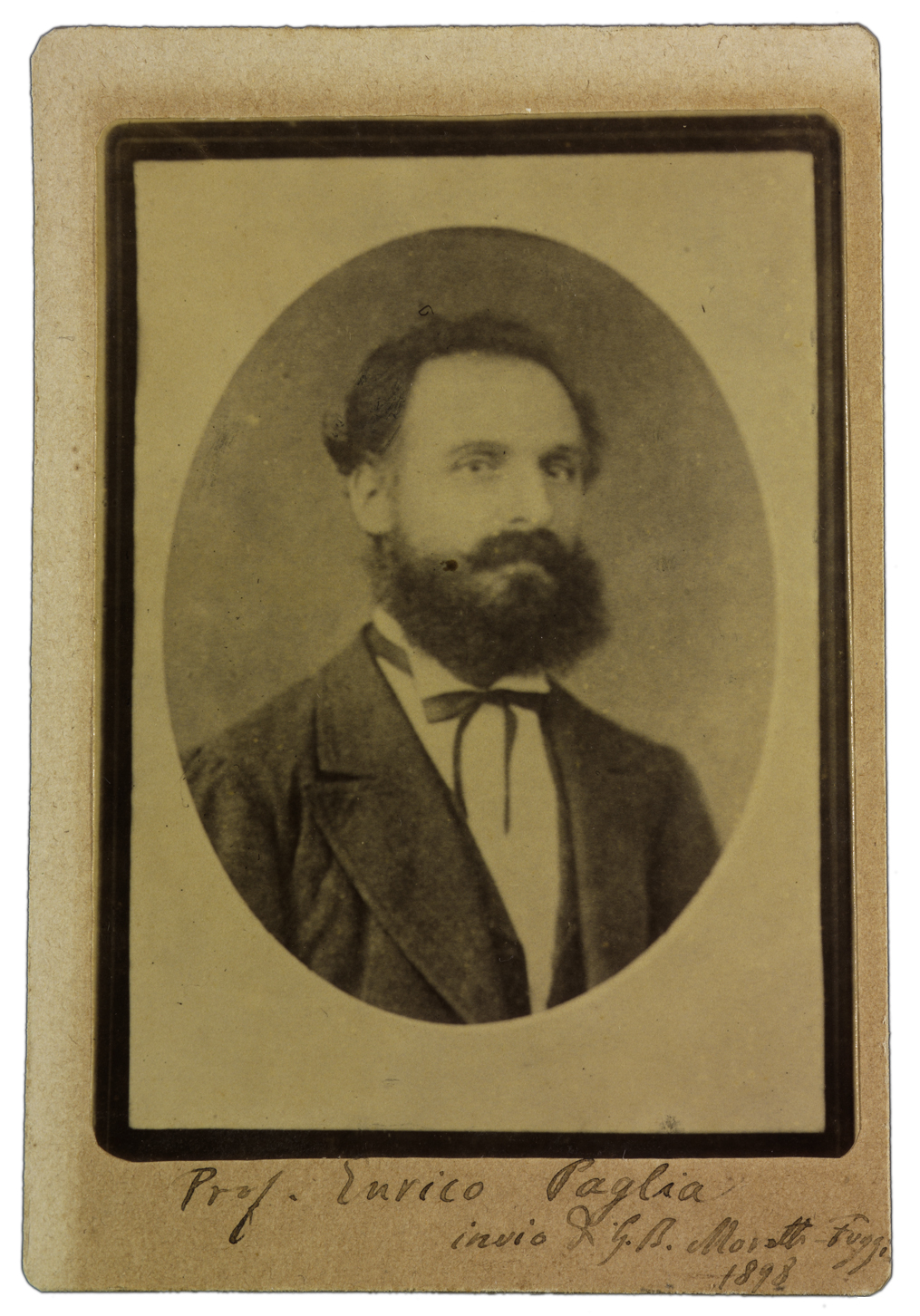 Nota manoscritta sul verso: Prof. Enrico Paglia.