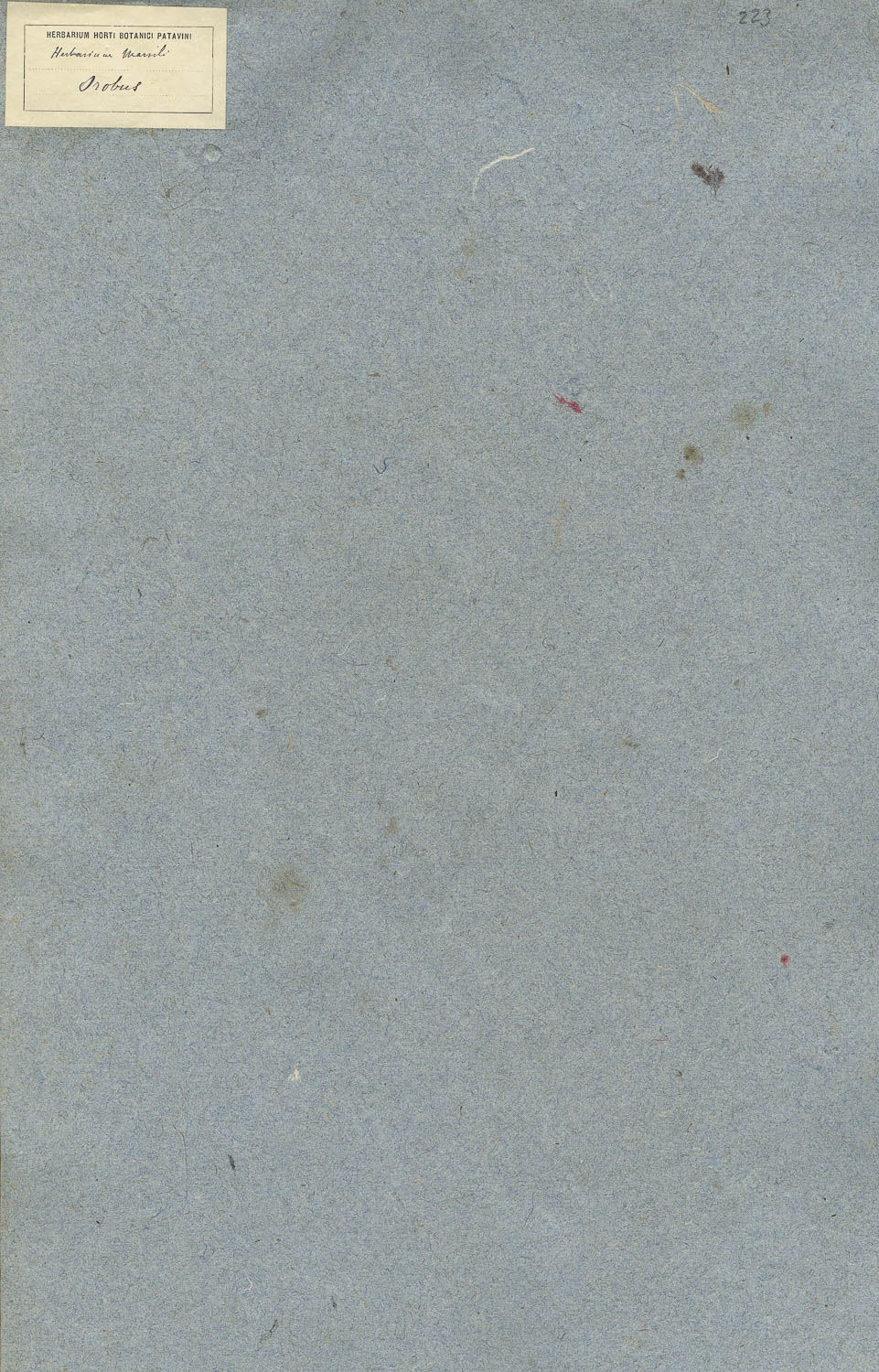 Camicia dell'erbario Marsili con etichetta a stampa: HERBARIUM HORTI BOTANICI PATAVINI