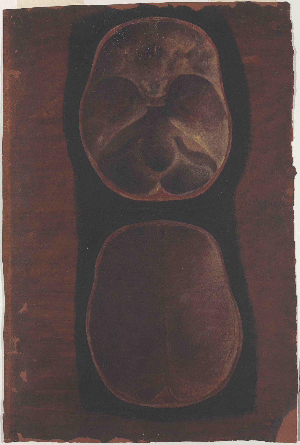Superficie interna del cranio con la base (in alto) e la volta (in basso)