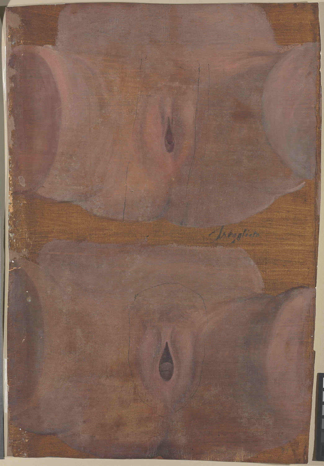 • Pudendo femminile, vulva, Girolamo Fabrici Acquapendente, Fabricius, tavole anatomiche, pitture colorate anatomia, Theatrum totius animalis fabricae, De anatomia abdominis et parcium in eo contentarum, teatro dei corpi