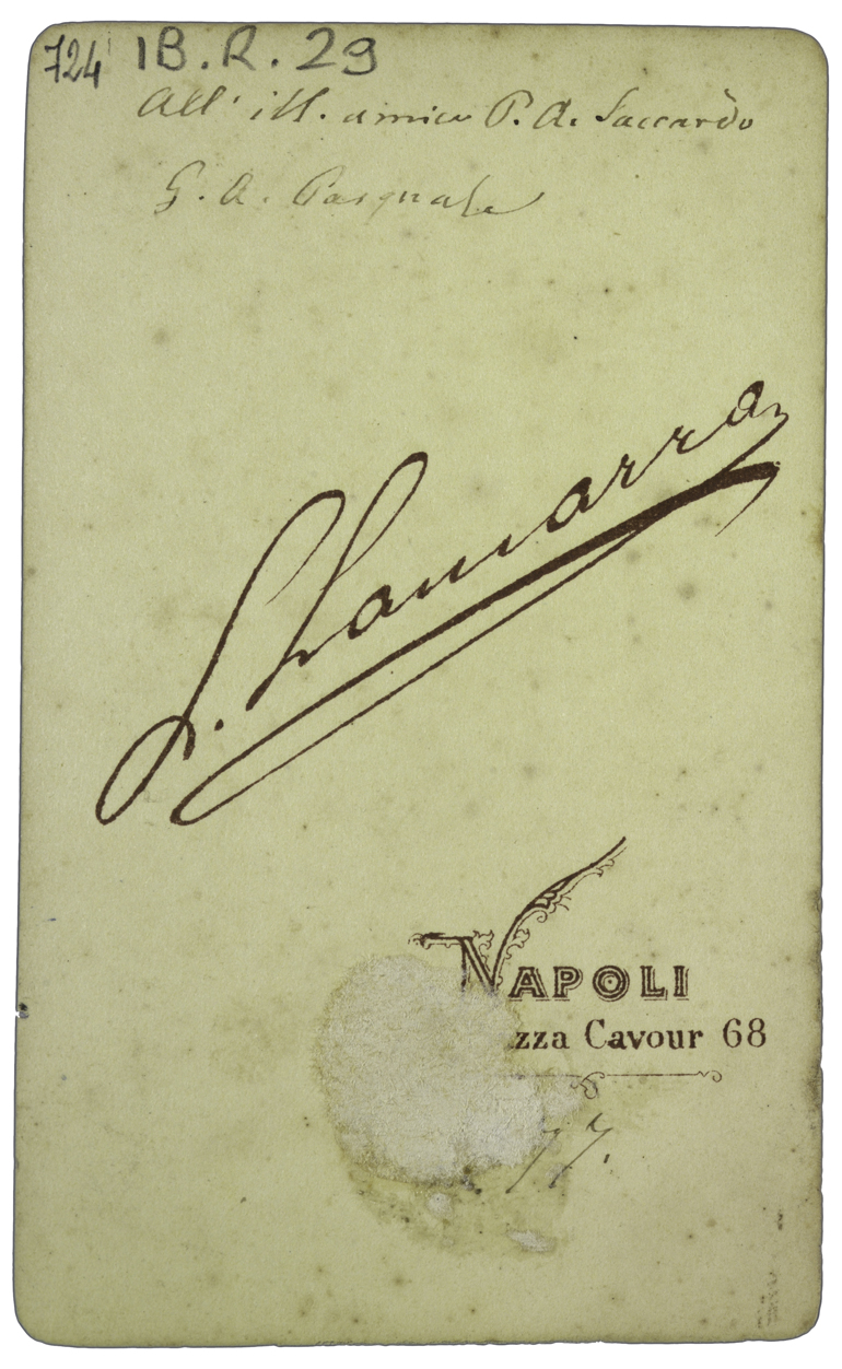 Nota manoscritta sul verso: all’ ill. amico P. A. Saccardo G. A. Pasquale.