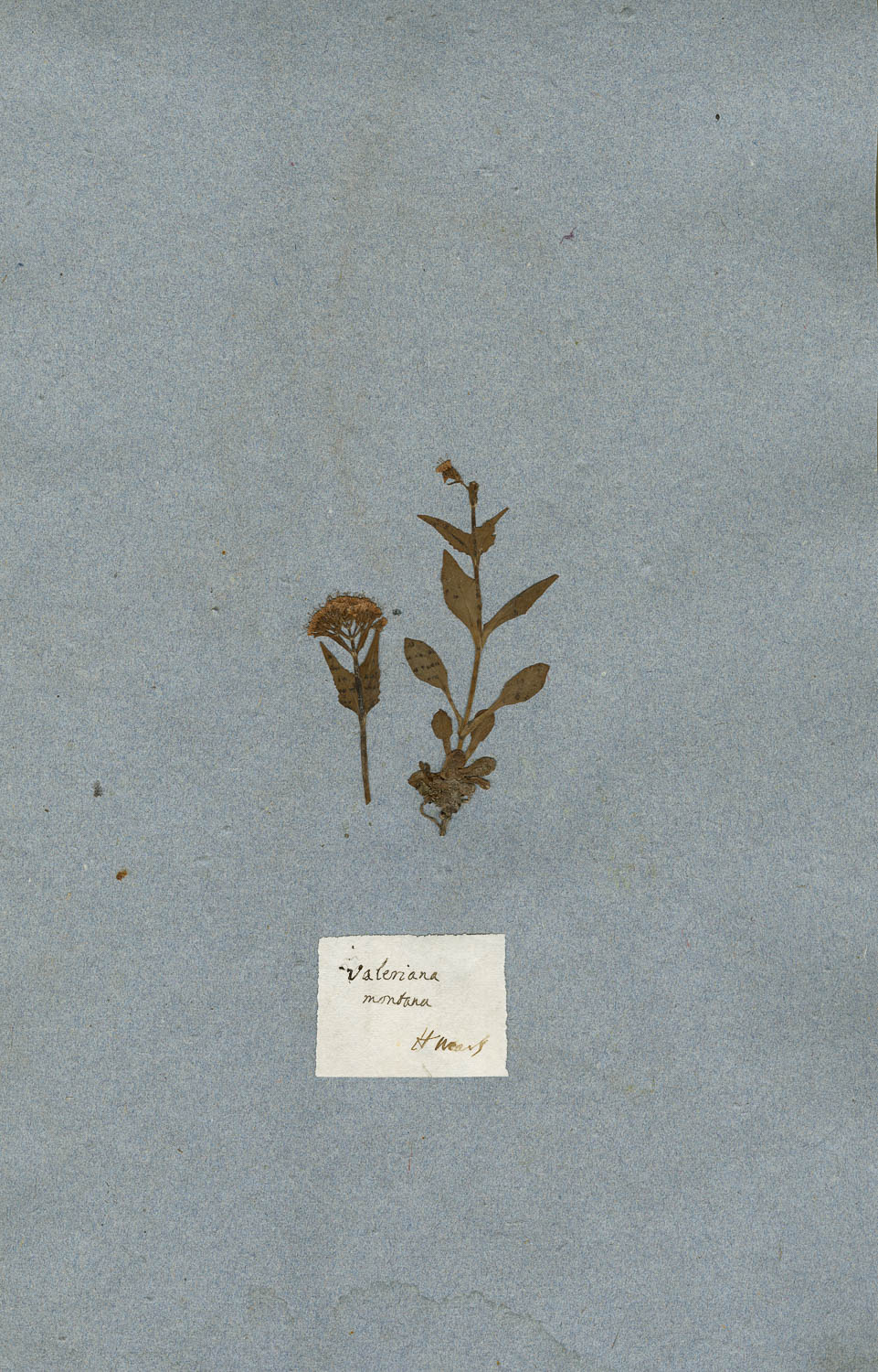 Foglio dell'erbario di Giovanni Marsili con cartellino manoscritto: Valeriana montana