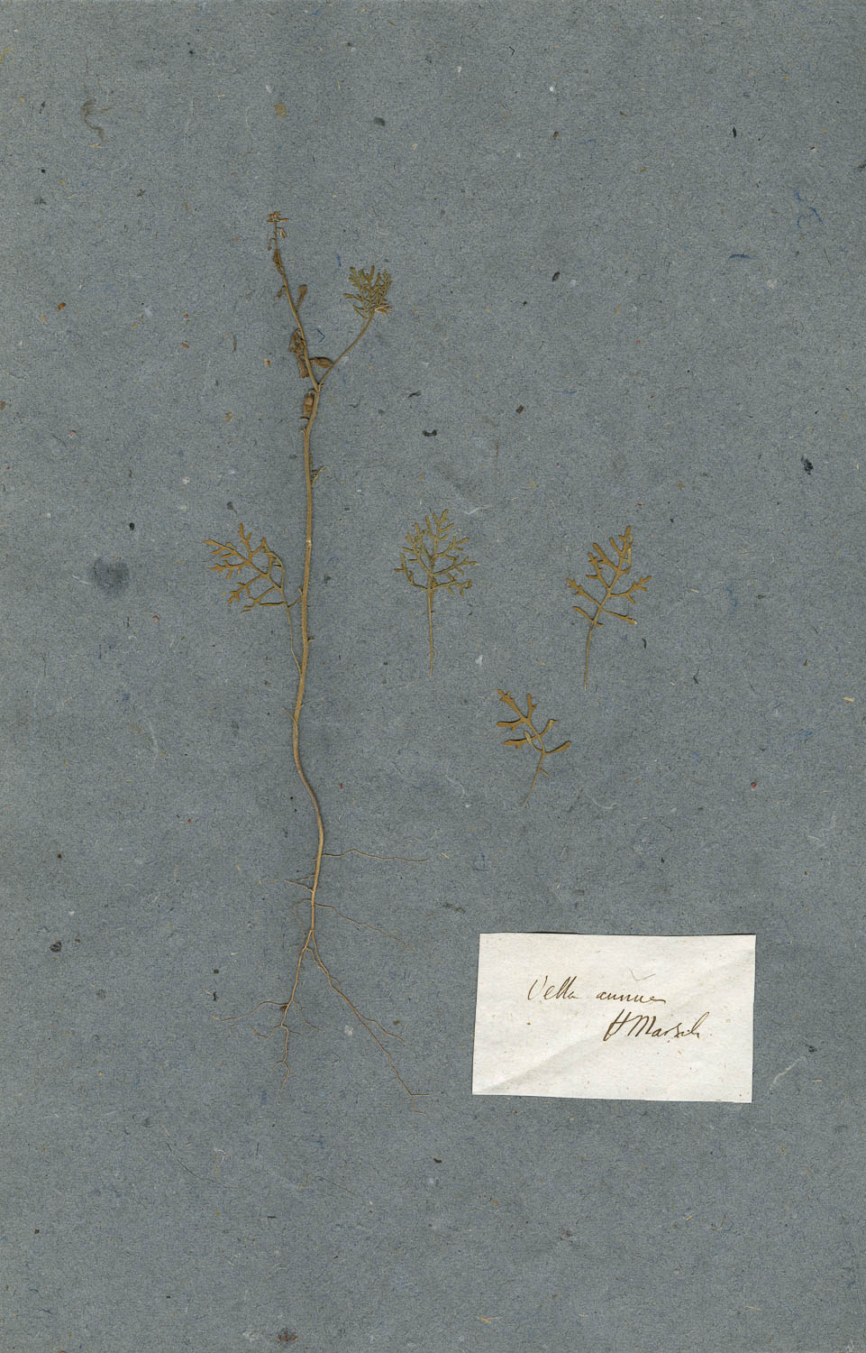 Foglio dell'erbario di Giovanni Marsili con cartellino manoscritto: Vella annua.
