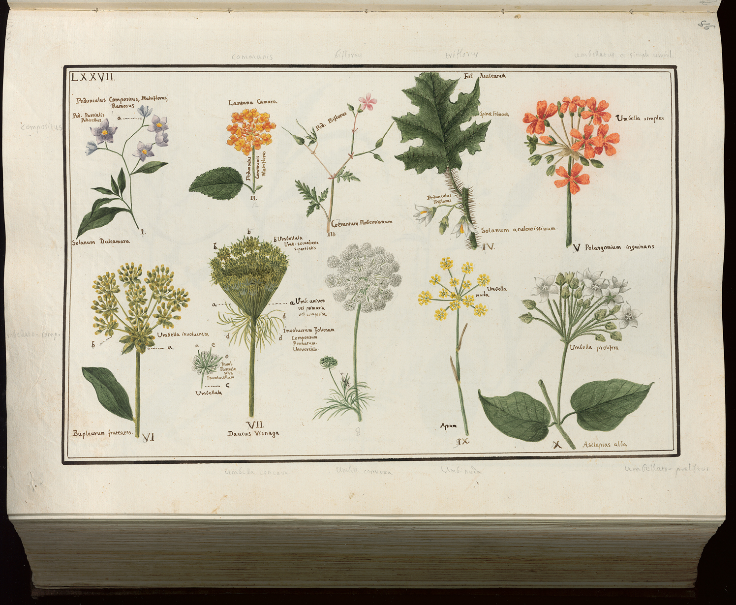 • pittura botanica, Bonato, Orto Botanico Padova, erbario dipinto, fiori, piante
