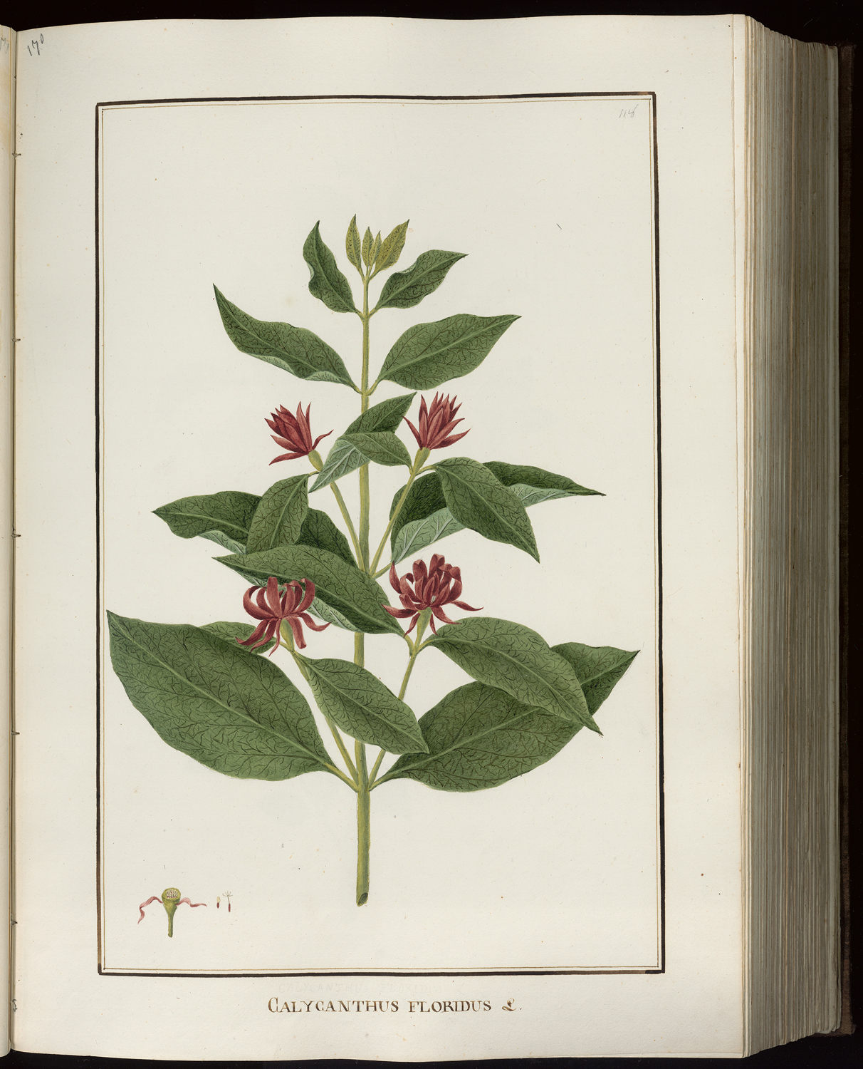 • Calycanthus floridus L., calicanto della Carolina,Cattrani, pittura botanica, Bonato, Orto Botanico Padova, erbario dipinto, fiori, piante