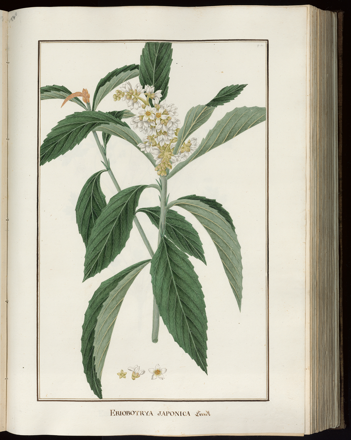 • Cattrani, nespolo del Giappone, Eriobotrya japonica Lindl., pittura botanica, Bonato, Orto Botanico Padova, erbario dipinto, fiori, piante