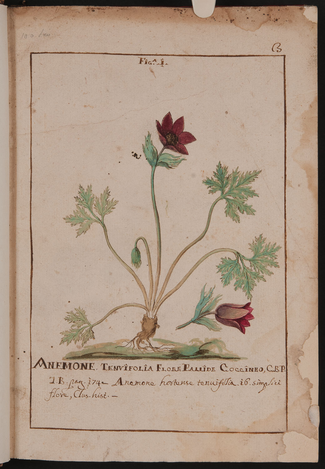 Volume cartaceo che comprende 101 tavole botaniche disegnate e dipinte a mano, numerate ma prive di denominazione (con l’eccezione di tre tavole).