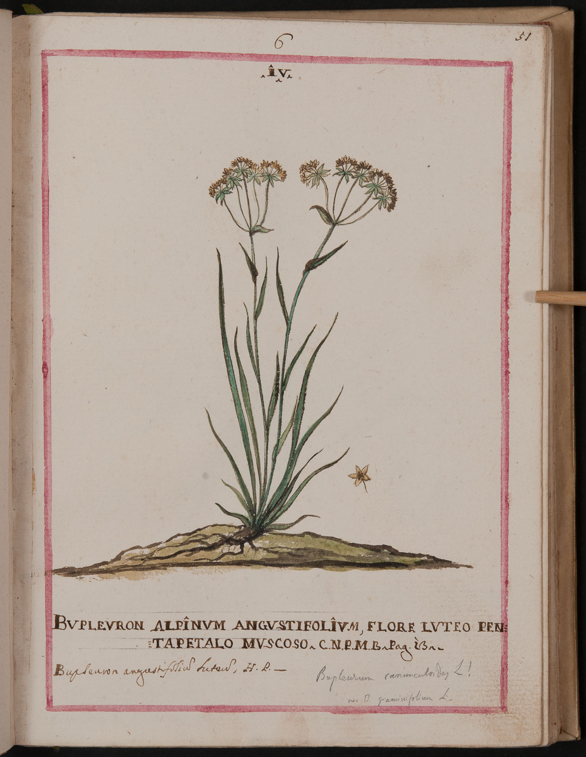 Numerose note manoscritte posteriori, relative in particolare a diverse denominazioni della piante. Alla nomenclatura bauhiniana è aggiunta la citazione di un'opera dello stesso Martini: Catalogus plantarum M. Baldi (pubblicato a Verona nel 1707)