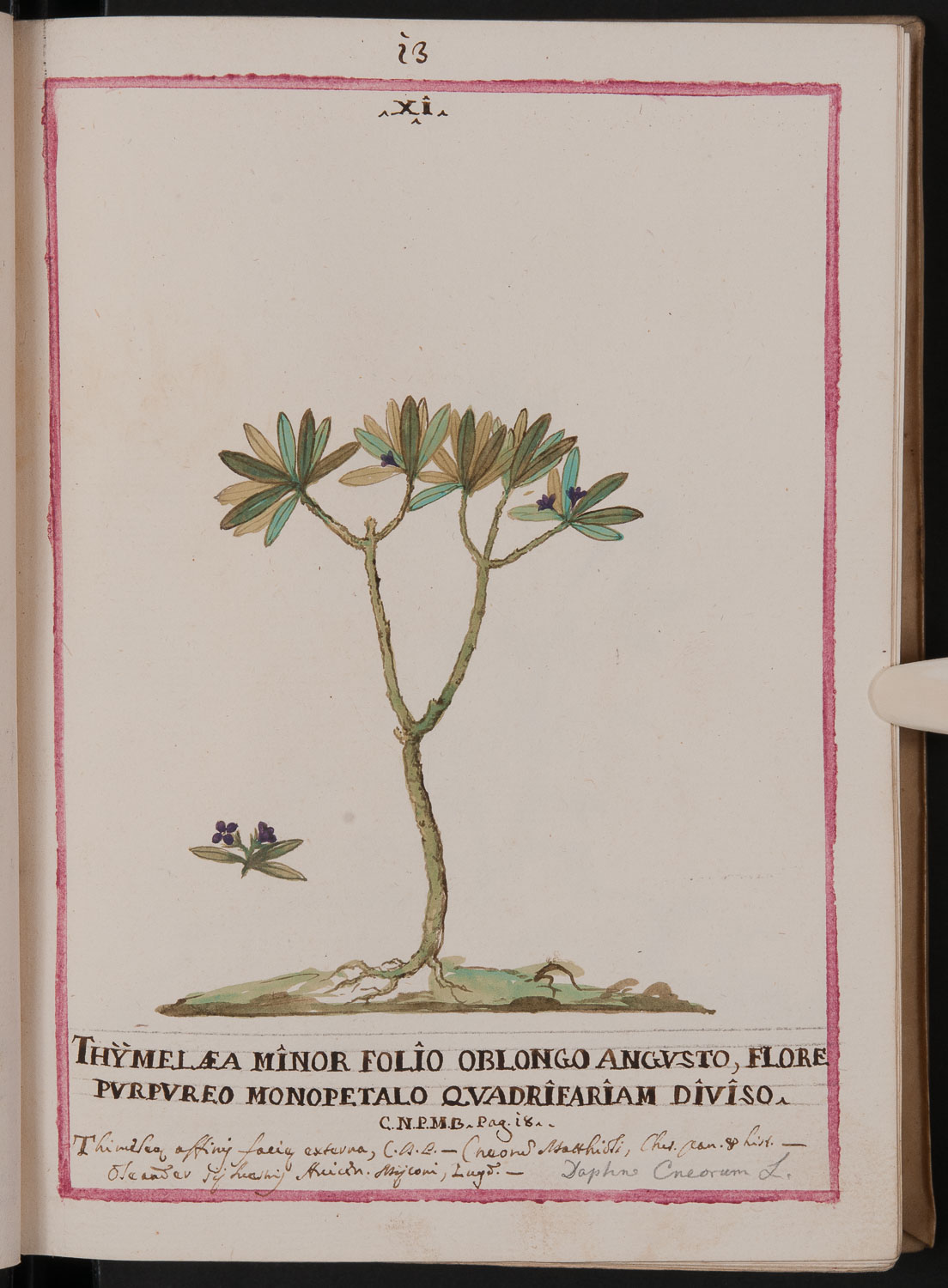 Codice figurato in 4 volumi rilegati in due tomi, con in tutto 210 tavole di piante del Monte Baldo, disegnate e colorate a mano dal Martini, entro cornice rossa.