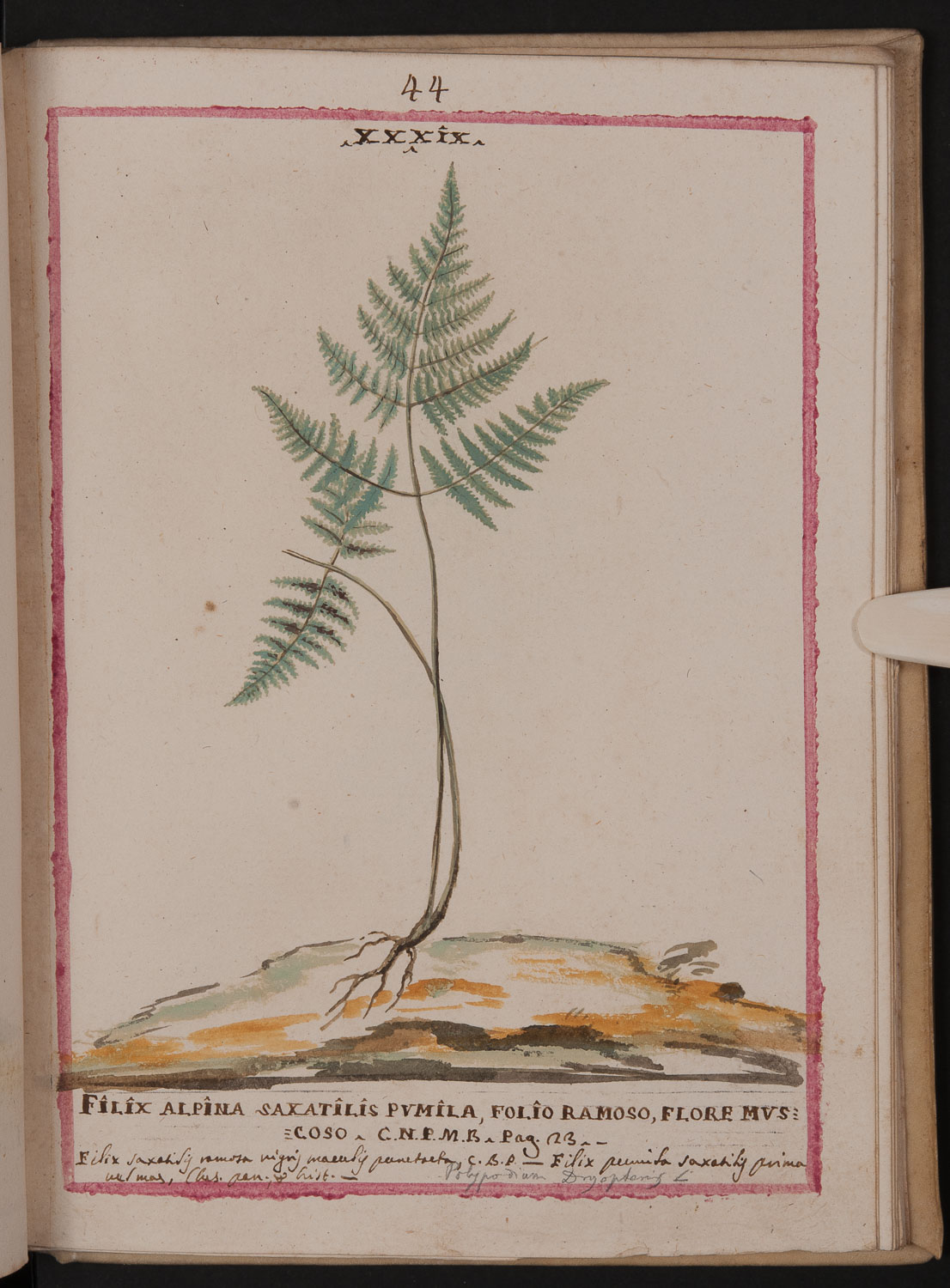 Numerose note manoscritte posteriori, relative in particolare a diverse denominazioni della piante. Alla nomenclatura bauhiniana è aggiunta la citazione di un'opera dello stesso Martini: Catalogus plantarum M. Baldi (pubblicato a Verona nel 1707).