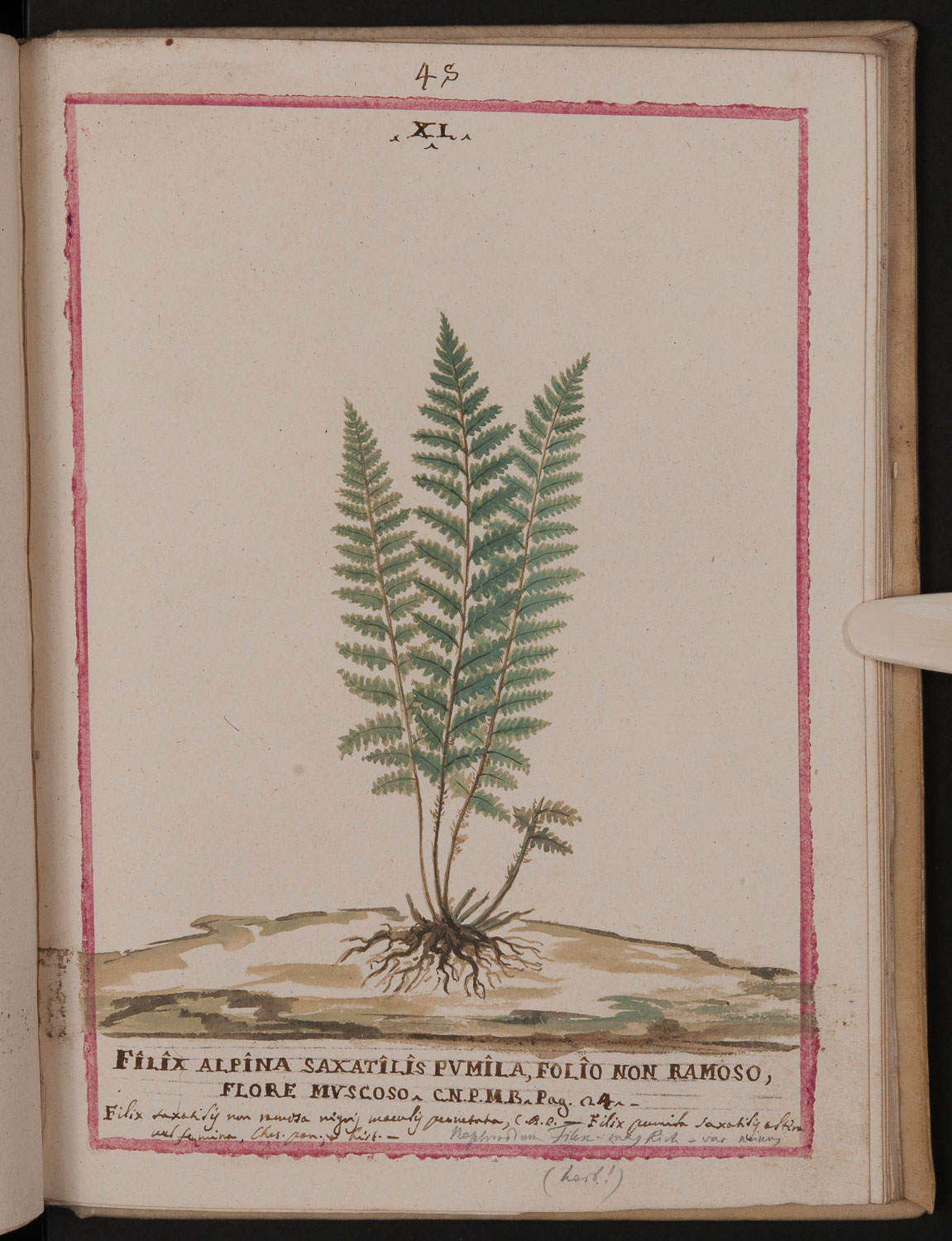 Numerose note manoscritte posteriori, relative in particolare a diverse denominazioni della piante. Alla nomenclatura bauhiniana è aggiunta la citazione di un'opera dello stesso Martini: Catalogus plantarum M. Baldi (pubblicato a Verona nel 1707).