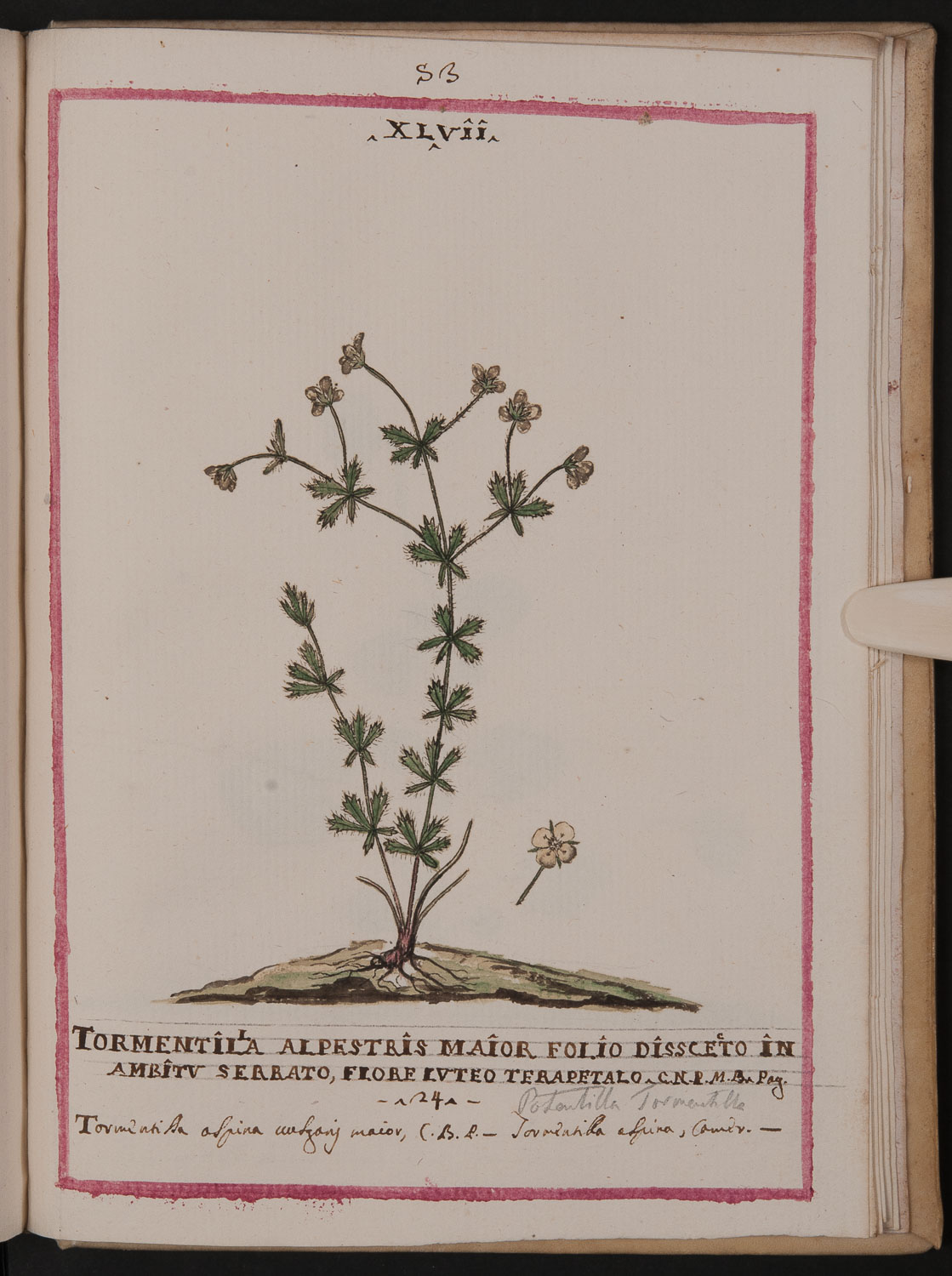 Numerose note manoscritte posteriori, relative in particolare a diverse denominazioni della piante. Alla nomenclatura bauhiniana è aggiunta la citazione di un'opera dello stesso Martini: Catalogus plantarum M. Baldi (pubblicato a Verona nel 1707).