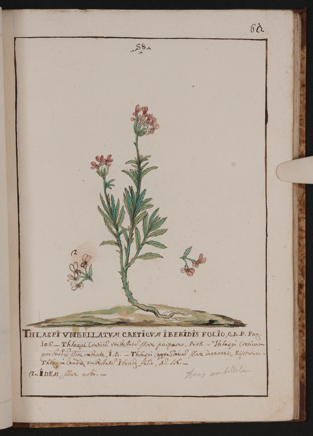 Erbario manoscritto, disegnato e dipinto a mano, contenente 100 piante erbacee ed arboree, in tavole numerate, sotto la pianta nomenclatura Bauhiniana e nomencaltura linneana aggiunta a matita da P.A. Saccardo.