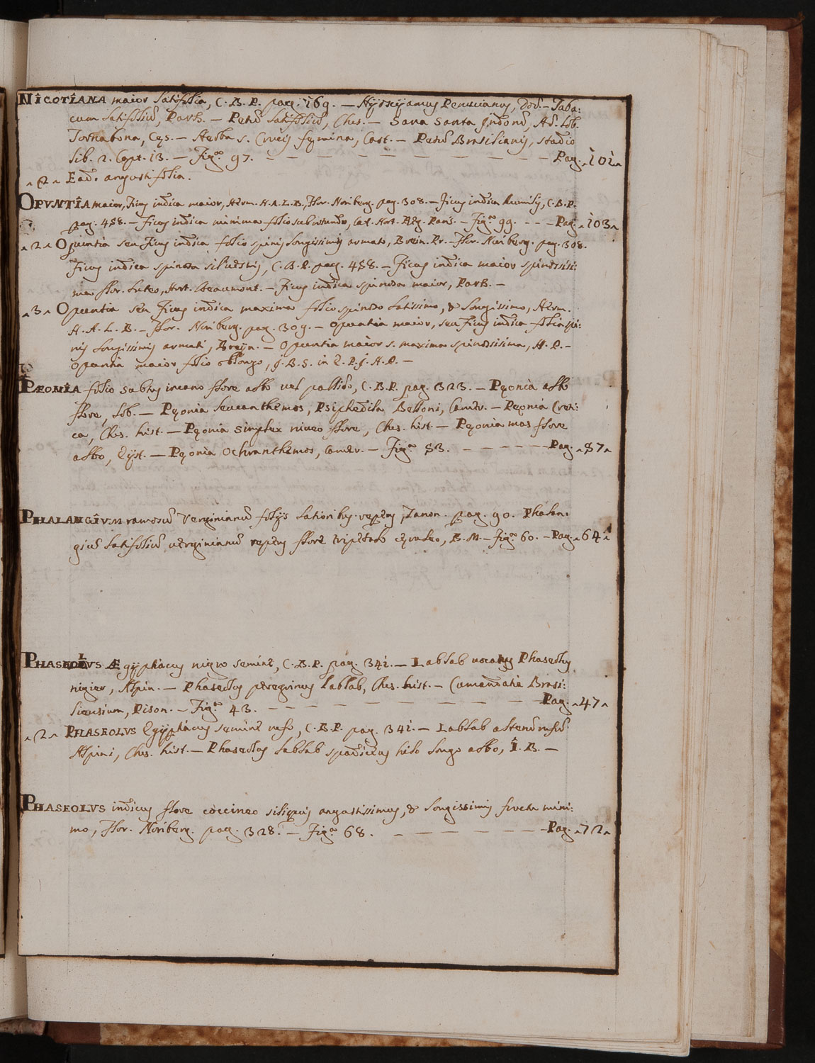 Erbario manoscritto, disegnato e dipinto a mano, contenente 100 piante erbacee ed arboree, in tavole numerate, sotto la pianta nomenclatura Bauhiniana e nomencaltura linneana aggiunta a matita da P.A. Saccardo.