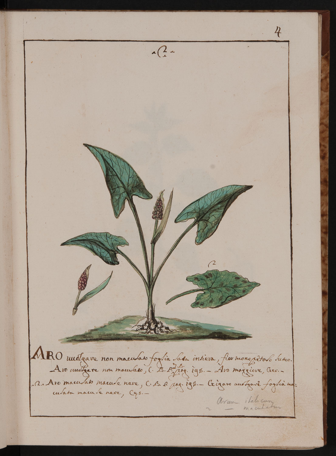 Erbario manoscritto, disegnato e dipinto a mano, contenente 100 specie vegetali, per lo più della pianura e non alpine (come farebbe invece supporre il titolo), in tavole numerate.