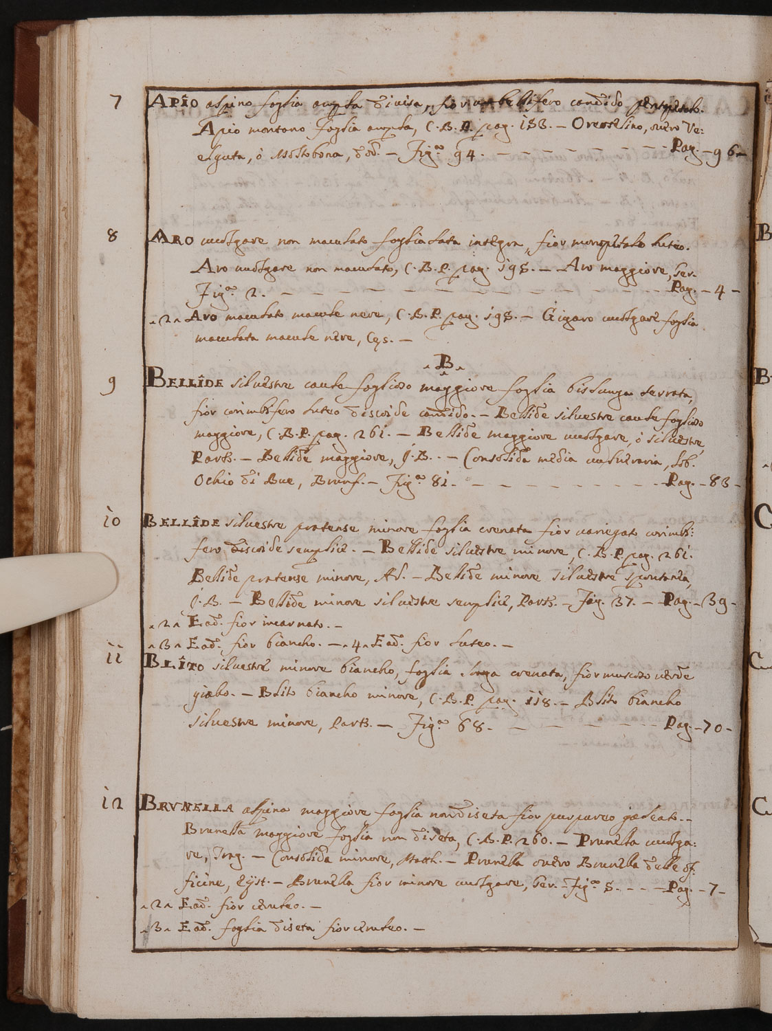 Erbario manoscritto, disegnato e dipinto a mano, contenente 100 specie vegetali, per lo più della pianura e non alpine (come farebbe invece supporre il titolo), in tavole numerate.