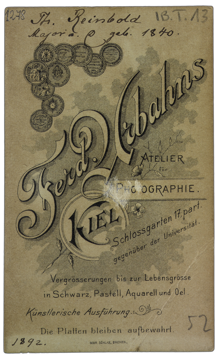 Note manoscritte sul verso: Th. Reinbold Major a [...] geb. 1840; 1892.