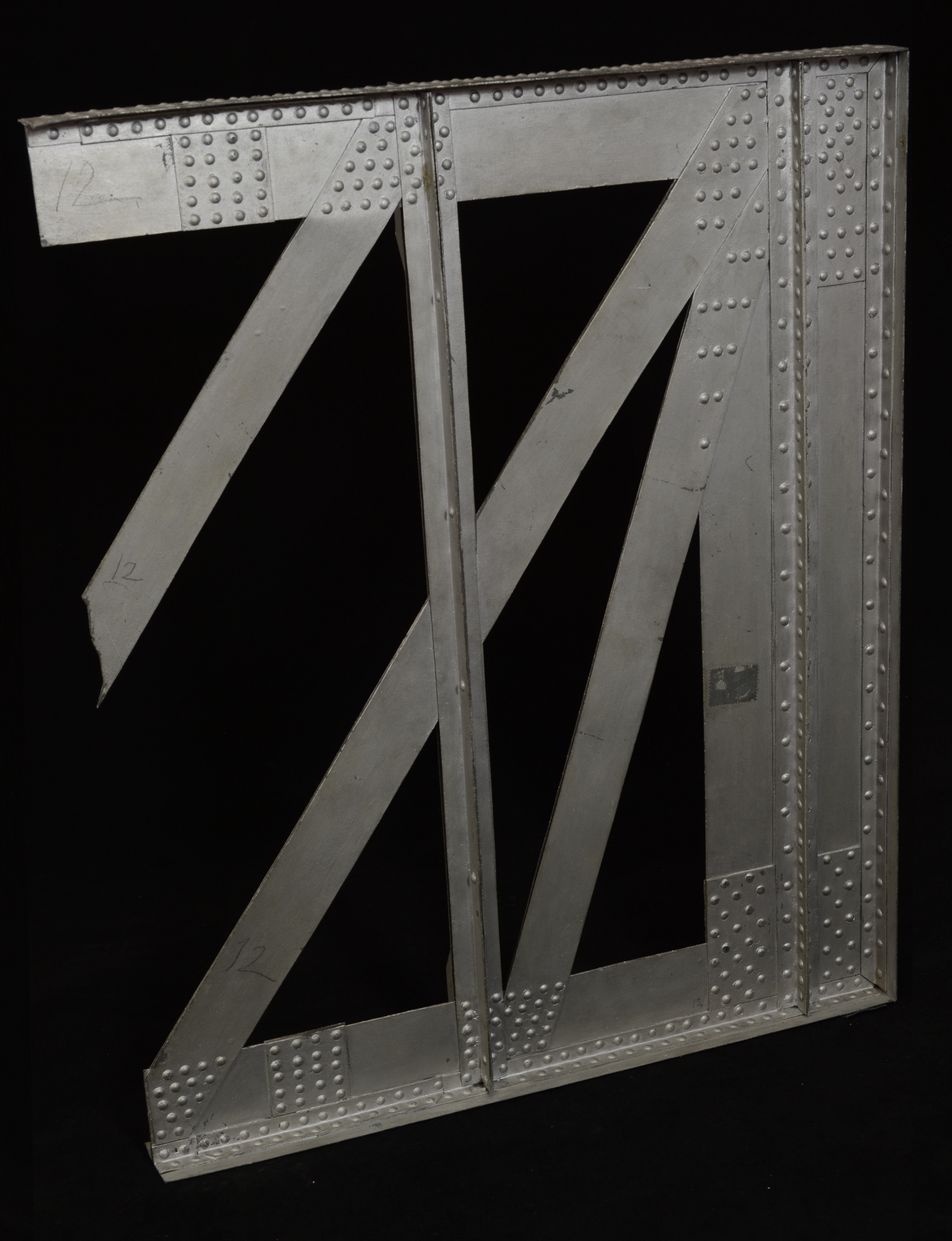 Le aste diagonali, di inclinazione progressivamente decrescente a partire dall'appoggio, sono semplici striscie di lamiera dimensionate a trazione. La tavola 29 dell'Atlante del Chicchi mostra che nella zona centrale si accoppiano a creoce di S. Andrea, essendo prevedibile l'inversione dello sforzo di taglio per effetto del carico concentrato mobile.