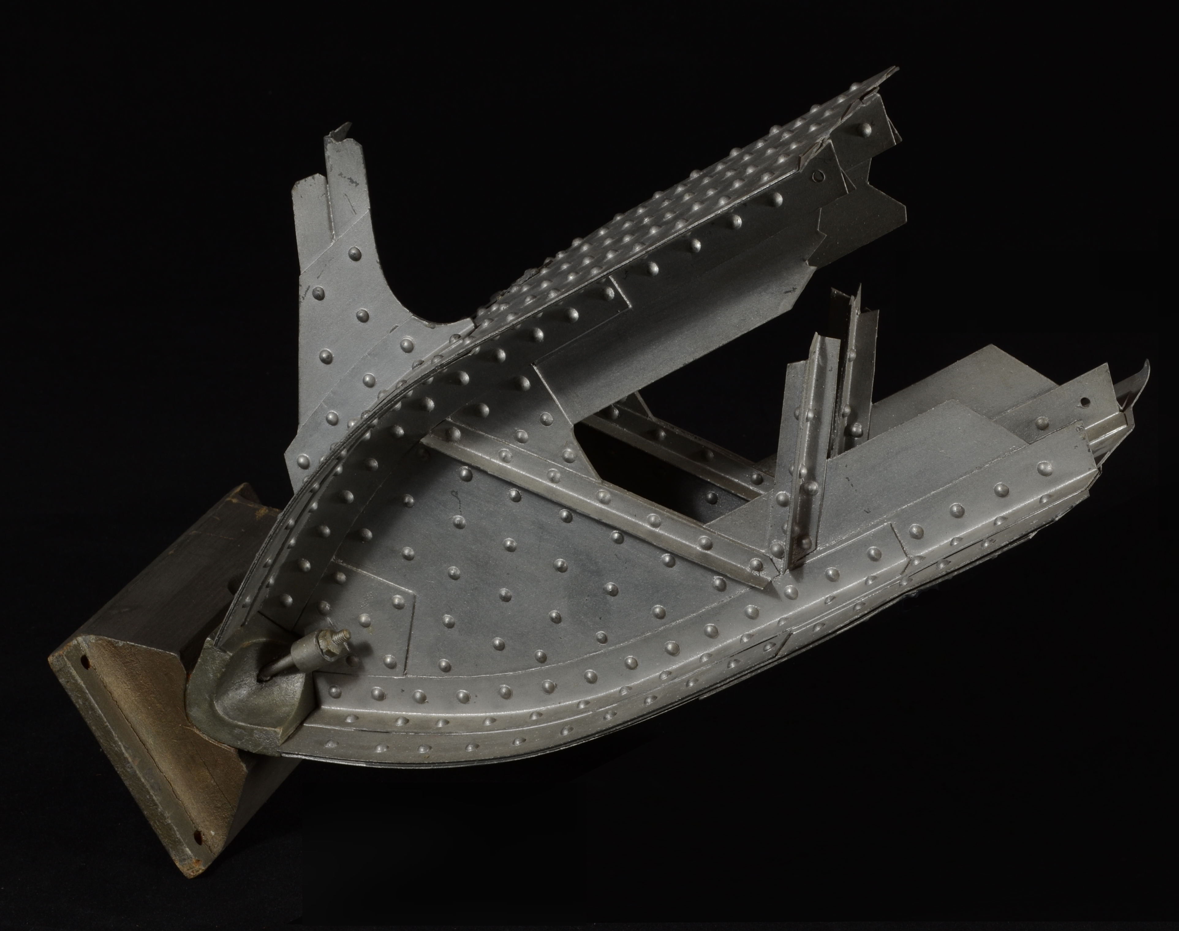 Il modello rappresenta una cerniera di un ponte ad arco reticolare. Si noti il montante incastrato sulla faccia superiore: la metà risulta strappata.