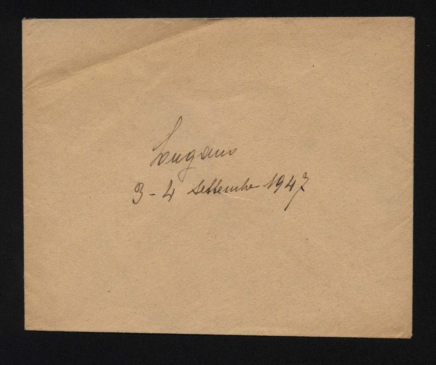Busta gialla con scritta 'Lugano || 3-4 settembre 1947' sul recto. Il luogo e la data indicati corrispondono alle giornate di seminario intitolato 'Civitas Nova' e organizzato da Arnoldo Bettellini. La serie di incontri mirava a "fondare a Lugano un centro di educazione internazionale alla pacifica convivenza, alla cooperazione" (O. Sepe, 1998, p.1140). Oltre a Gino Luzzatto che tenne delle "preziose conversazioni di storia dell'economia" (O. Sepe, 1998, p.1142) vi furono lezioni-conferenze di Gaetano Salvemini, Egidio Reale, Goncalo Reparaz, Carleton Washburne, Guido Valeri e altri intellettuali.