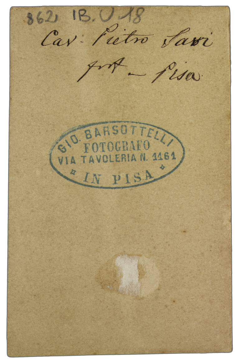 Nota manoscritta sul verso: Cav. Pietro Savi [...] Pisa.