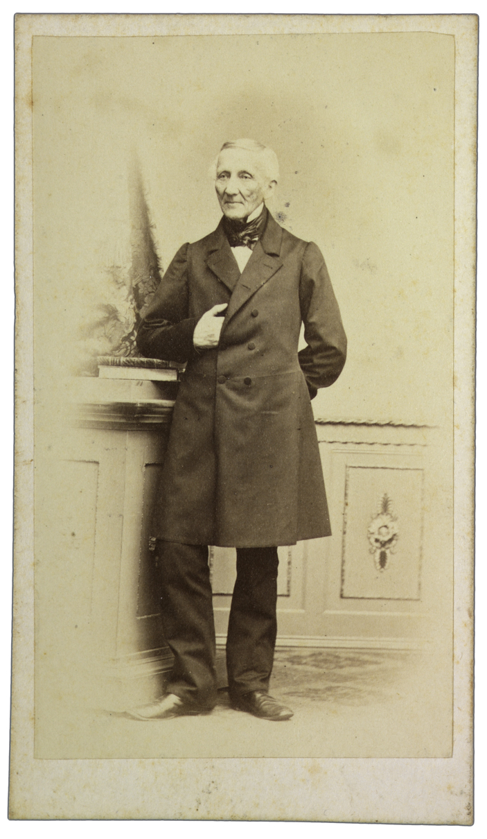 Titolo manoscritto sul verso, dove compaiono anche le note: Dietrich Franz Leonhard v. Schlechtendal geb.zu Xanten a Rhein 27.XI.1794. + zu Halle 12.X.1866 - photogr. 1866. Professor Dr. [...] et medic. Directeur O. Hgl. Botan Gartensi H. 1833-66 mein vater; Herren Prof. Dr. A. Trotter mit freundlihem Gruss Halle a/s d. 27.I.1908 Dietrich H. R. v. Schlechtendal; Botanico.
